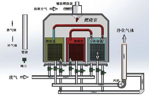 ? ? ??RTO主體結構由燃燒室、陶瓷填料床和切換閥等組成。該裝置中的蓄熱式陶瓷填充床換熱器可使熱能